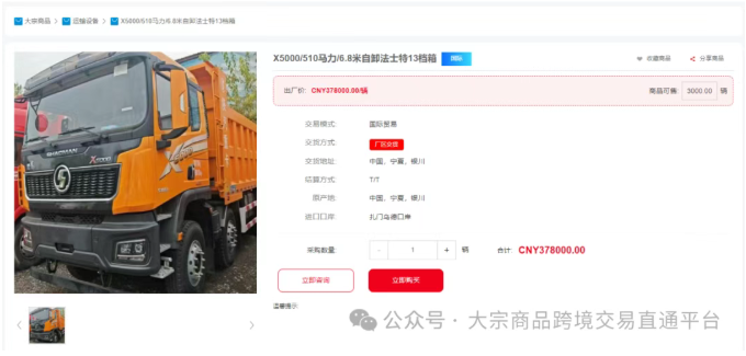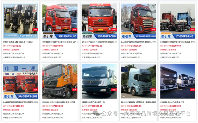 目前,大宗平台上的汽车出口系统已经汇集了多家知名企业的优质产品: 上海智能网联汽车技术中心有限公司 纯电动系统无人驾驶重载牵引车和混动系统IGV智慧引导车等,展现中国在智能网联汽车领域的技术实力。 河北宏泰专用汽车有限公司 提供低温液体运输半挂车、铝合金罐式运输半挂车和罐式运输半挂车等专用车辆,满足特种运输需求。 宁夏李旺物流有限公司 中国一汽解放牌新能源重卡 大麦汽车销售服务有限公司 哈佛大狗、小米YU7、捷途、深蓝汽车等热门乘用车 义力德工贸有限公司 渣土车、牵引车等工程车辆 这些车型覆盖了从乘用车到商用车,从普通运输到特种作业的多个领域,充分展现了中国汽车制造业的多样性和国际市场竞争力。 一:登录大宗平台官方网站:www.kjdzjy.com (手机端应用商店搜索“大宗平台”下载app。) 二:进入个人中心,设置出口系统 三:浏览所有可用出口的车辆信息 四:选择合适的车辆联系大宗平台交易经理完成交易流程 大宗平台出口系统的完善,为中国汽车生产企业与海外买家搭建了直接沟通的桥梁,批量的汽车出口业务,为国内汽车企业降低了国际市场拓展的门槛和成本。 目前,通过大宗平台可出口至全球25个国家,覆盖蒙俄、中亚、中东等地,除了为国外采购商对接国内汽车厂商的优质出口汽车资源,国内汽车厂商及汽车零部件厂商也可登录入驻,在大宗平台上架自有商品,拓宽销售渠道。 欢迎大家登录使用! End 欢迎关注分享给你的朋友!