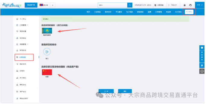 在系统设置中,选择您要交易货物的国别(商品原产国)为【中国】