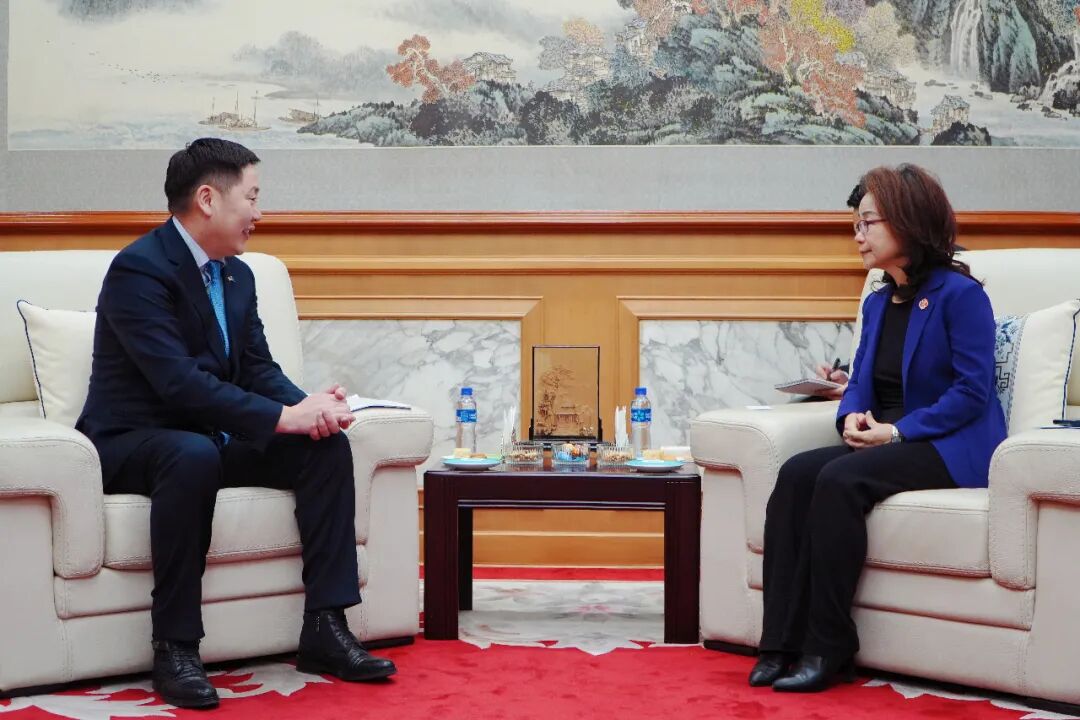 2月4日,沈敏娟大使会见乌兰巴托市巴彦高勒区区长苏米亚巴特尔。